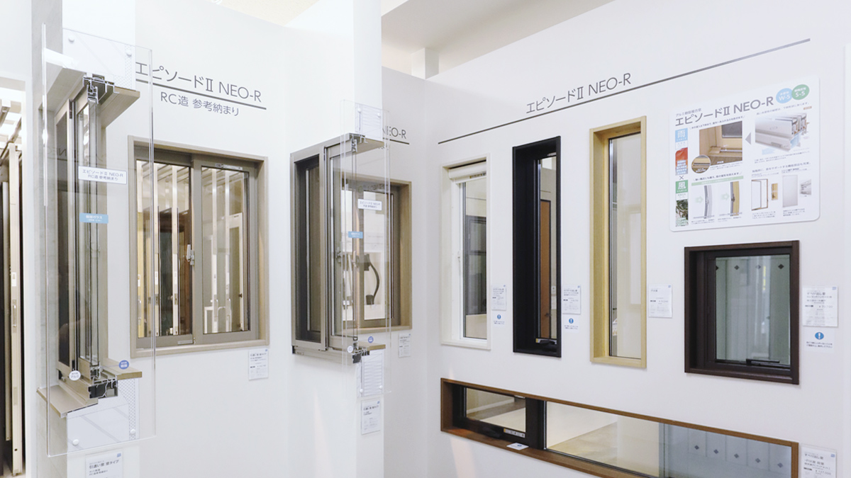 沖縄の自然環境に対応したアルミ樹脂複合窓「エピソードⅡ NEO-R」を展示しております。体感コーナーにて窓やガラスの違いによる遮熱・断熱効果の違いもあわせてご体感いただけます。