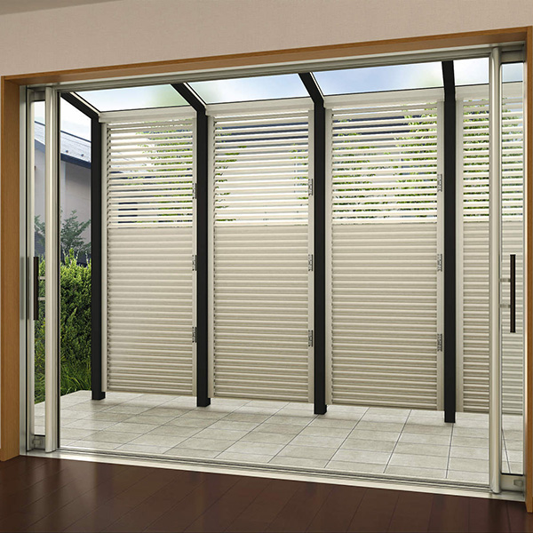 ルーバーを任意の角度に調整できるパネルです。角度によって目隠し・通風・採光・遮熱などの機能を果たします。