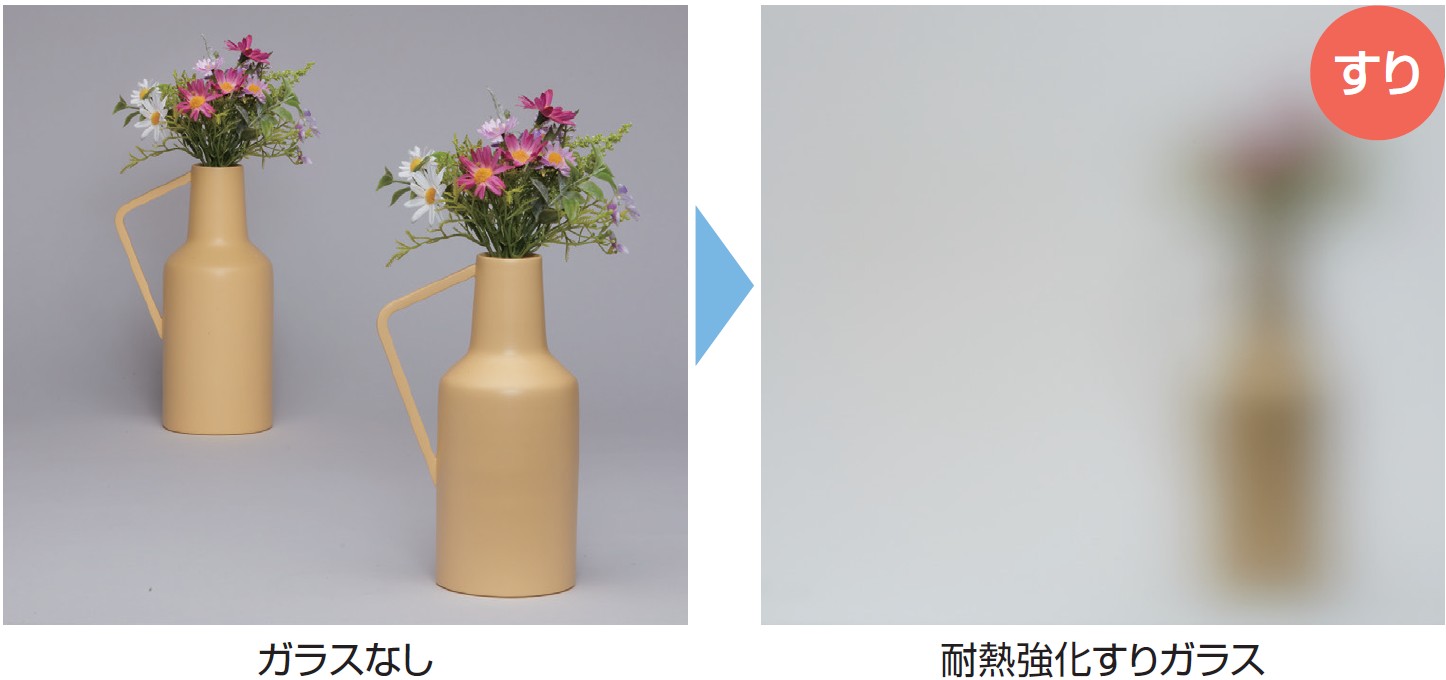 プライバシーを守りたい部屋には、視線を適度に遮る耐熱強化すりガラスがおすすめです。