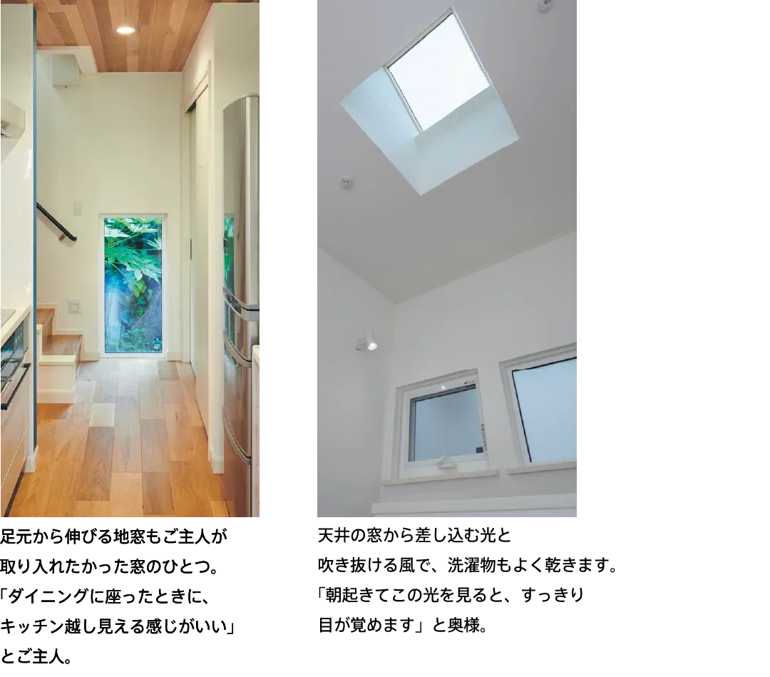 改めて樹脂窓にしてよかった点についてお尋ねしたところ「まだ真冬は経験していないものの、3月の朝晩冷え込んだ日も暖房をつけることなく過ごせたので、断熱性は期待できますね」とご主人。また、千葉に住むご主人のお母様が遊びにいらした時も、千葉の築10数年のご実家と比べて「うちより全然暖かい!と羨ましがっていた」と笑います。