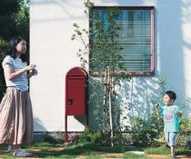 美しく整えられた緑の芝と植栽、赤い宅配ボックス、そして『APW 330木目仕様』の窓とファサードは、道行く人も思わず立ち止まってしまうほど。こちらが今回お話をお聞きするI様ご夫婦と3歳の息子さんが暮らす新居です。
