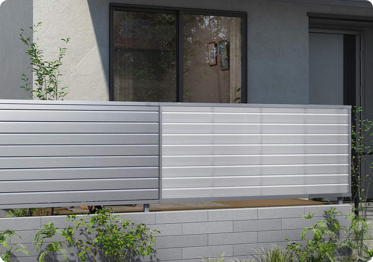 フェンスは、シンプルなデザインはもちろんのこと、ルーバーデザインや、2種類のデザインを組合せることもできます。ご希望に合せてバリエーション豊かなラインアップからお選びいただくことができます。