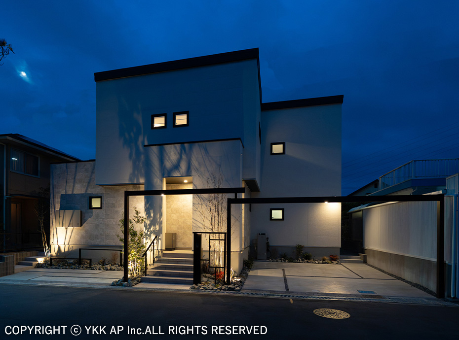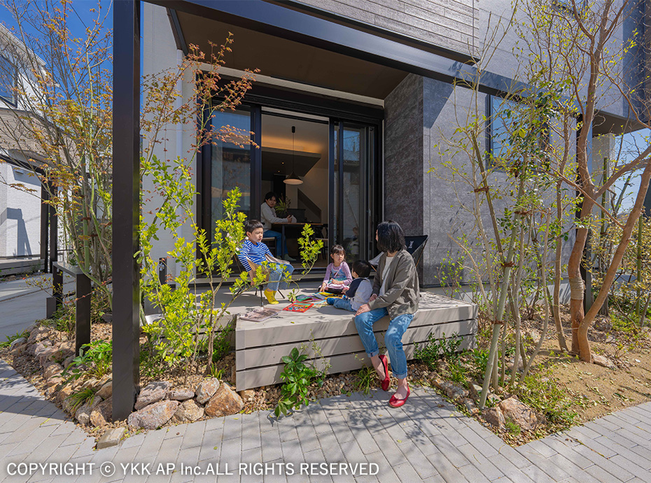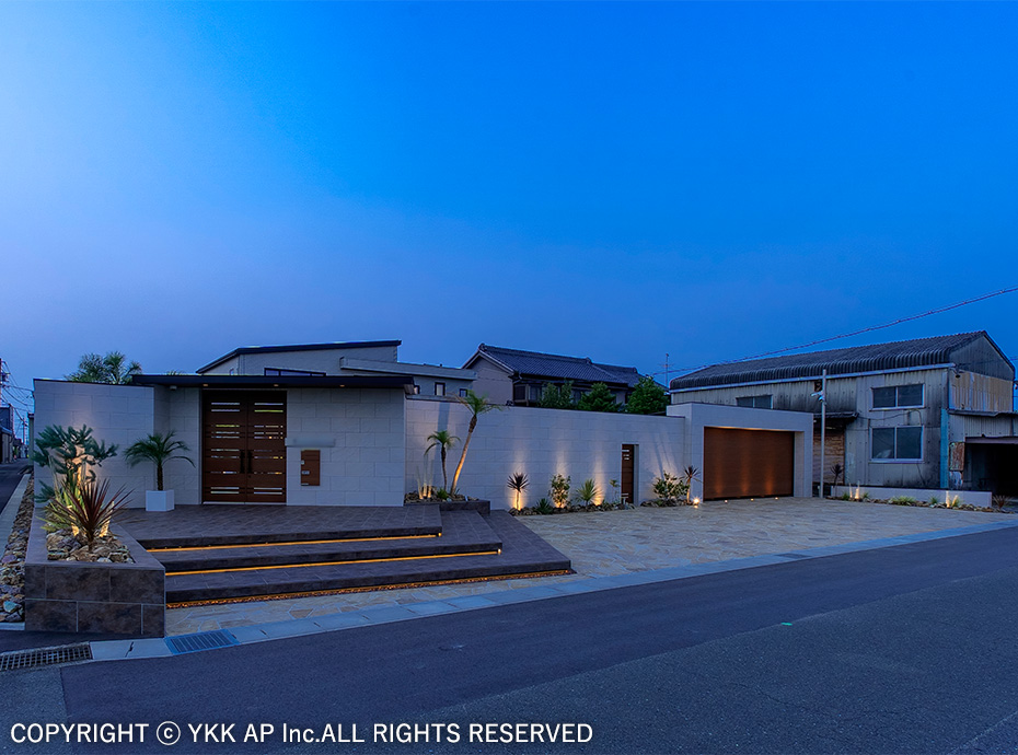 採用商品名リレーリア フロントフレーム/ルシアス ウォール/プリュード パーティションフレームユニット/ルシアス 歩行補助手すり/ルシアス フェンスLite/リウッドデッキ 200/ルシアス デッキフェンス/低電圧照明「VIEW UP」/APW 430/APW 431 大開口スライディング/リモコンスリットシャッターGR/イノベスト D70/D50