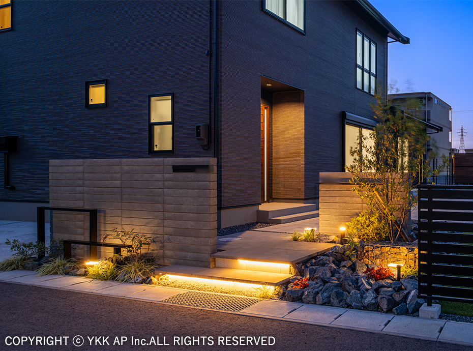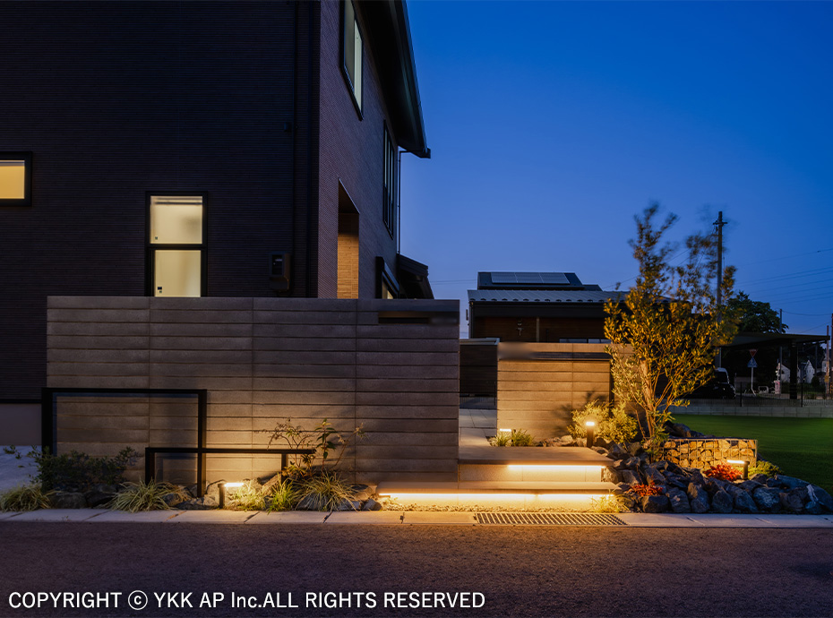 採用商品名リレーリア フロントフレーム/リレーリア ルーフフレーム/エクスティアラ アーチ/エクスティアラ アーチ用門扉/エクスティアラ 門扉/ルシアス 宅配ボックス/エフルージュ(FIRST)シリーズ/低電圧照明「VIEW UP」/カスタマイズパーツ/汎用形材・部品