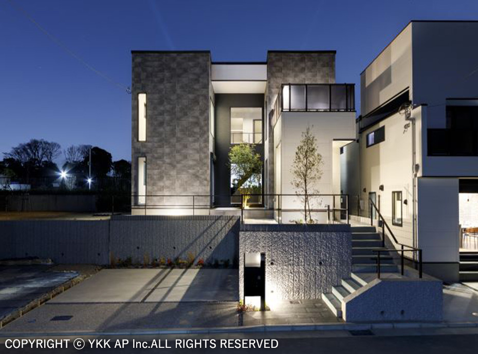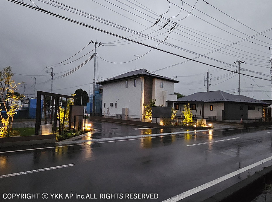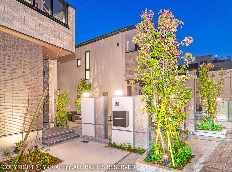 採用商品名リレーリア フロントフレーム/ルシアス 門扉/ルシアス ポストユニット/ルシアス 宅配ポスト/ルシアス 歩行補助手すり/ルシアス フェンスLite/低電圧照明「VIEW UP」