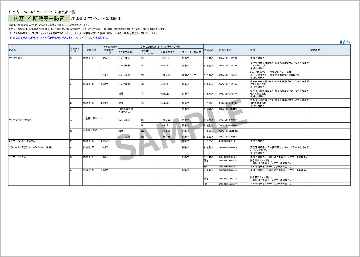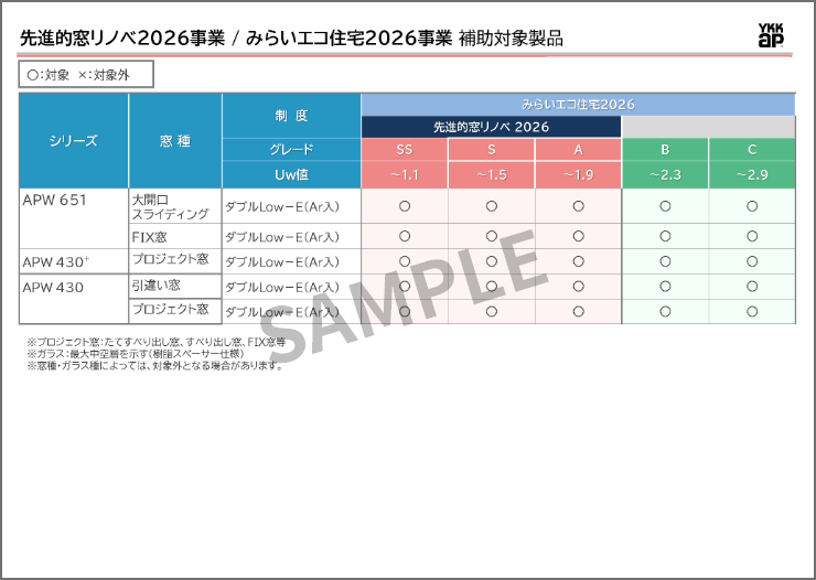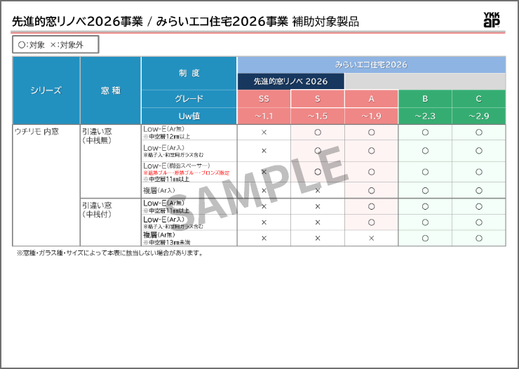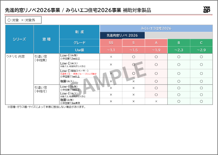 「先進的窓リノベ2026事業」と「みらいエコ住宅2026事業」共通の対象製品です。