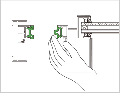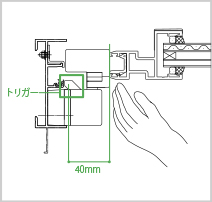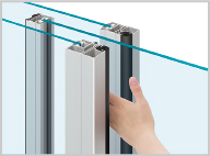 サッシたて枠に指はさみを防止するストッパーを設置し、安全へ配慮します。