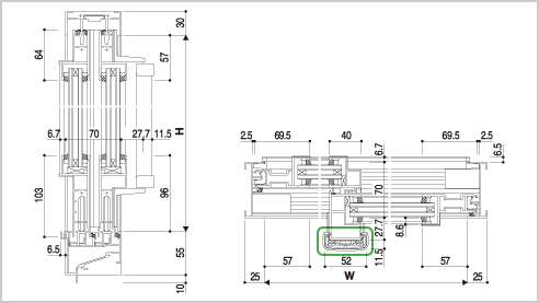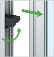 中心吊ピボットヒンジは枠・障子内に取り付きます。外部に部品が露出しないので、簡単に清掃できます。