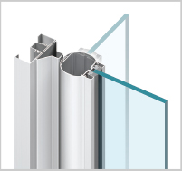中心吊ピボットヒンジを採用し、吊元側のたてかまちの形状をR型にしました。