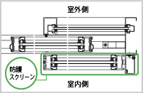 戸袋側に防護スクリーンを設置し、自動ドアが開く際の更なる安全性に配慮しました。