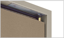 召合せ部にコーナーゴムを設置することが可能です(オプション)。ドアが開く時に指が引き込まれた場合、コーナーゴムにより痛みを軽減します。