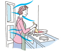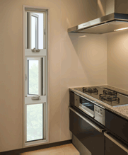 熱・煙・蒸気・においがこもりがちなキッチンに、風の入口と出口を確保し、効率的に換気ができます。限られた開口でもFIX窓との組み合せで、明るい室内空間を保ちます。
