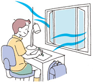 廊下側や妻側に面した窓でも安心して換気ができます。