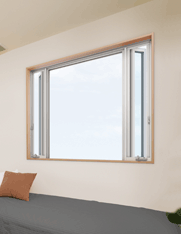 ひとつの窓で風の入口と出口を確保し、効果的な換気ができます。FIX 窓との組合せで、明るい空間を実現。寝室などの個室に快適さをもたらします。バルコニーのない妻側の窓に最適です。