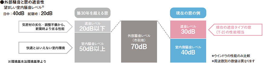 外部の騒音環境に応じて遮音性能の高い窓を選択することができます。